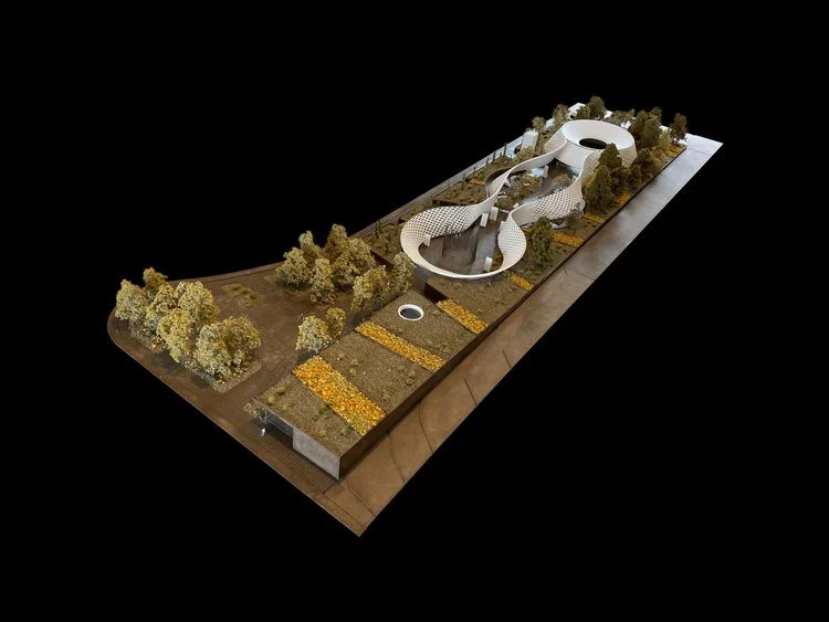 In dialogue with the client, it was agreed that the project should foster reciprocity between past and present, and offer a deeper emotional understanding of the war’s complexity. Immersive strategies would therefore guide both the exhibitions and the architecture. In Vietnam, the terrain was marked and scarred by combat; in Lubbock, Texas, by contrast, the topography is flat and windswept, with the city’s highest natural elevation only nine feet. To address this, the design begins by reimagining the site’s landscape. Inspired by the geography of war, the ground is sculpted to create elevations of 15 to 20 feet, from which the buildings and circulation paths are carved, as though unearthed from memory.