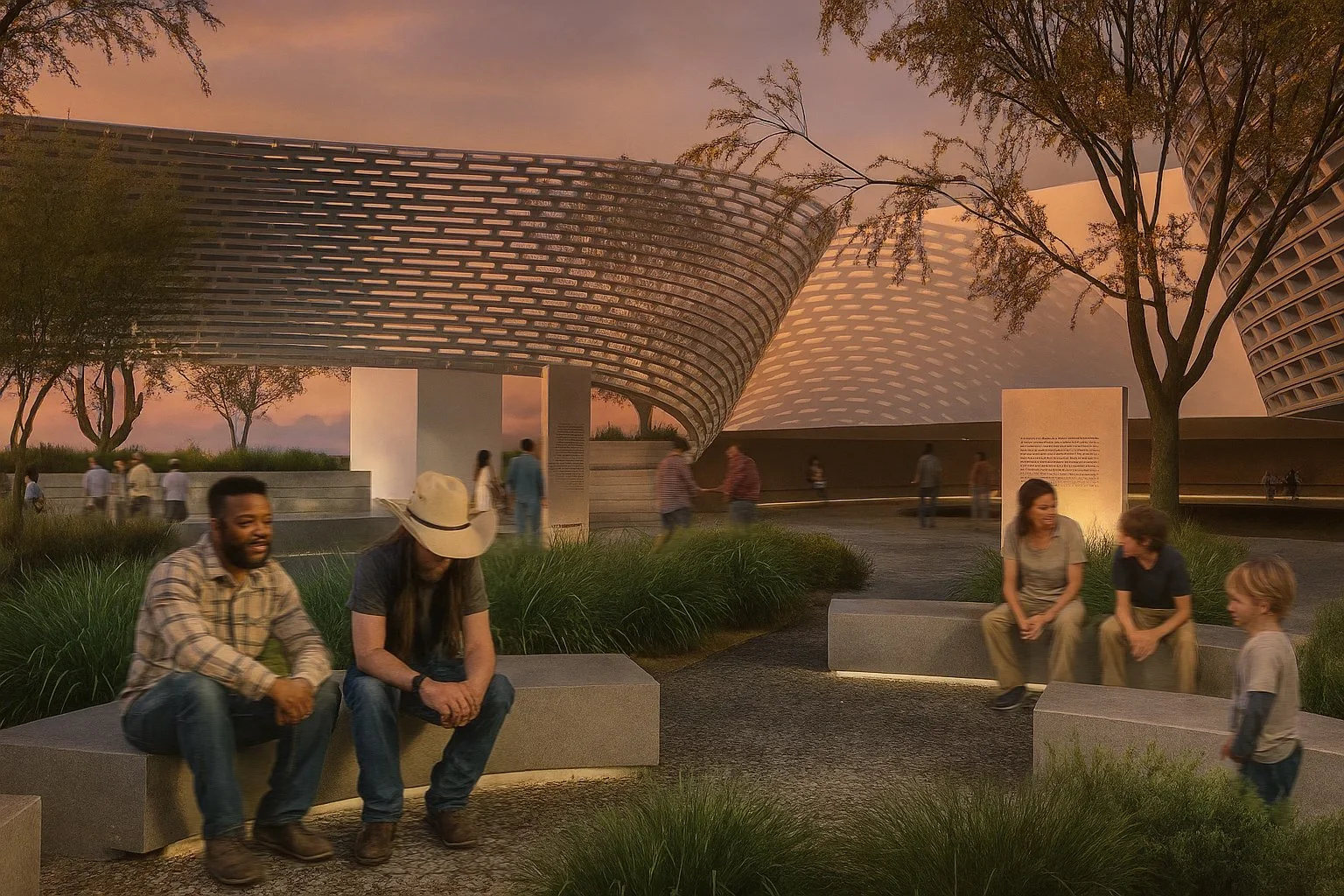 The memorial takes inspiration from the community’s devotion to country music, the dramatic landscapes of Las Vegas, and the enduring spirit of the desert. Natural references—the carving force of the Colorado River through the Mojave Desert, the lyrical curve of a guitar, the steadfast silhouette of a cactus, and the ancient fossil beds of Tule Springs—inform the design.